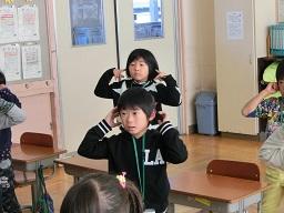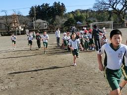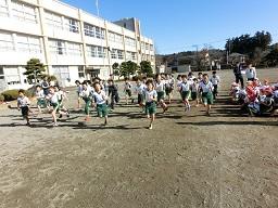 今日の業間のランランタイムです。5年生の体育委員会の子が1年生をリードしてくれています。