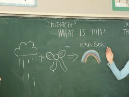 それは、ALTの先生が英語の複合語を「しま」と「うま」で「しまうま」と書いて絵を黒板に描いたからです。