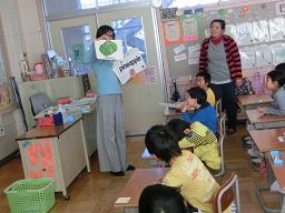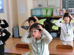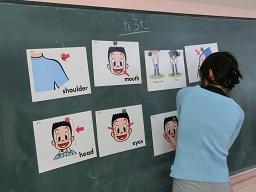次はALTの先生が絵カードを教室のあちこちのおいていきます。ドアには頭のカードです。
