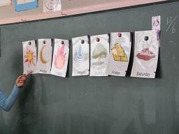 黒板には3か所に貼ってあります。これからアクティビティが始まります。続きは明日です。