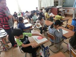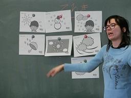 今度はALTの先生が絵カードをいろいろな場所に置き始めました。
