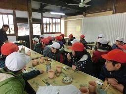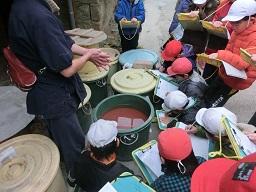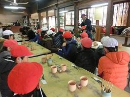 益子焼の人がやり方をせつめいしてくれました。みんなよく聞いています。聞かないと分からなくなるので、ぼくも一生懸命聞きました。