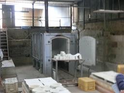 お皿は棚の上でいっぱい乾かしていました。「この窯で焼くんです。中の温度は1000度くらいになります。」と教えてもらいました。すごく熱い温度で焼くんだなあと思いました。