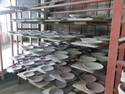 先週僕たちが見学したことの続きです。僕たちは、まず乾いたお皿に色を塗る薬を見せてもらいました。