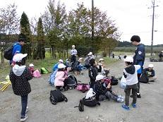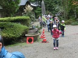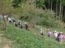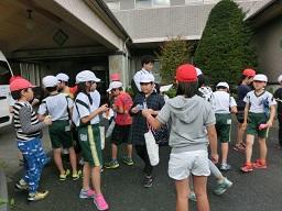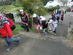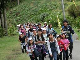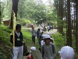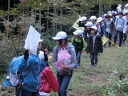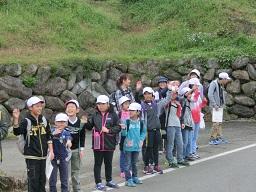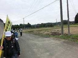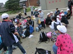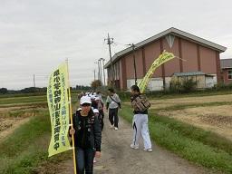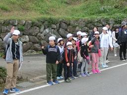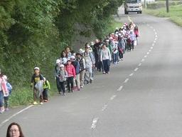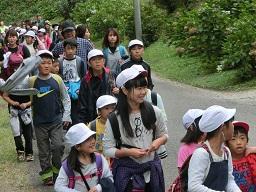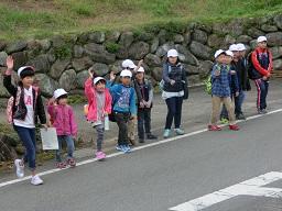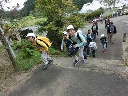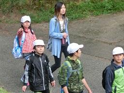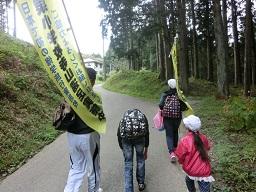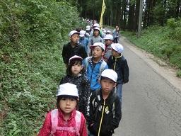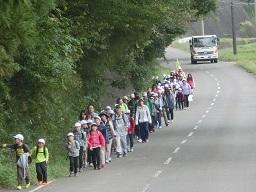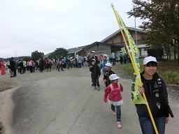 さあ、出発します。先頭の1班の6年生が旗を持って歩き出します。