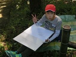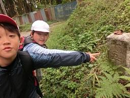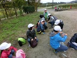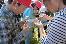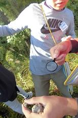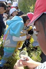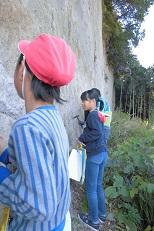 土石流の層がよく分かりました。子供たちはその層から石を見つけて虫眼鏡で観察しました。