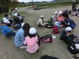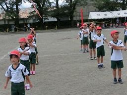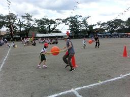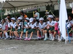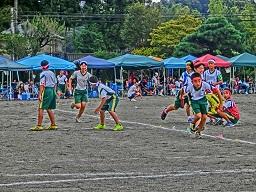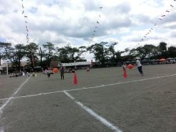 守りはさっき攻撃した5年生チームです。4年生チーム、楽しそうです。