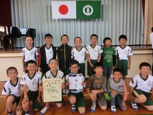 最後に矢板市学童野球交流大会優勝の表彰を行いました。この写真は表彰の後の記念撮影です。みんないい顔ですね。