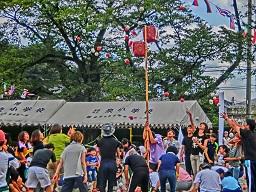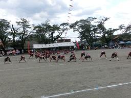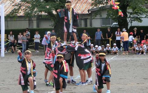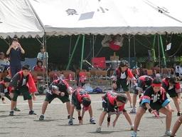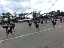 子ども達の演技に合わせて、ソーラン ソーラン と音楽がかかります。