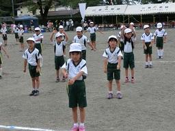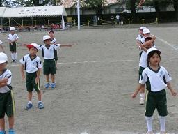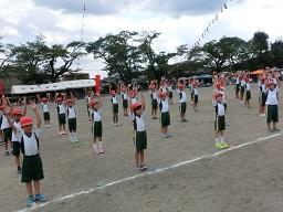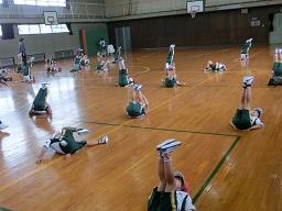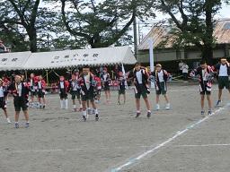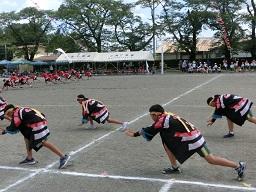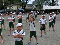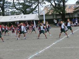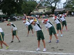 白組の整理運動の様子です。ここは2年生そしてこちらは3年生です。
