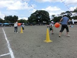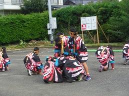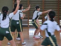 学年ごとに5人のチームを組んで攻撃と守りの練習をしました。