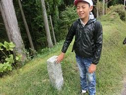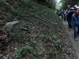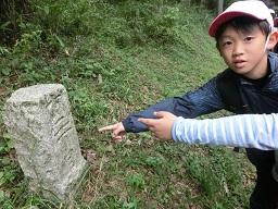 歩いている途中で石の道標を見つけました。「八丁目」と書いてあります。