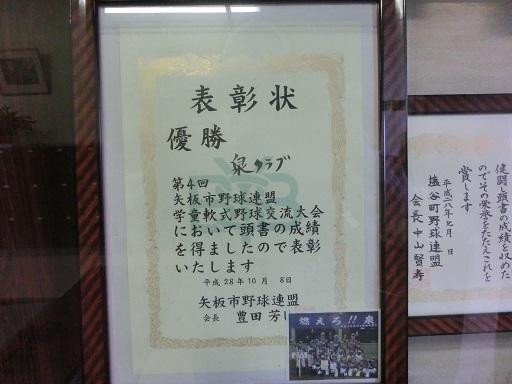 泉クラブの野球で市内大会優勝の賞状を飾りました。