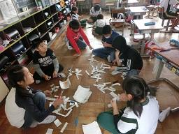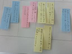 子供たちに配ったカードを指名された子が前に来て、黒板に分けながら貼っていきました。