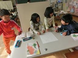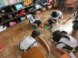 この日の3時間目は図工でかえる作りの課題が出ていました。