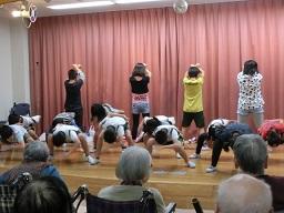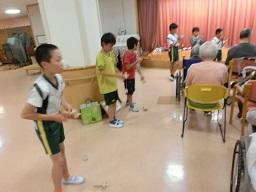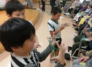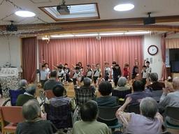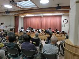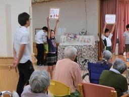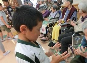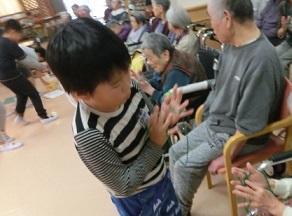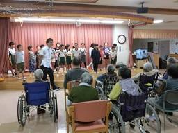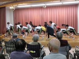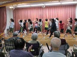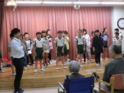 昨日の続きです。ステージに上がった4年生。お年寄りの方に、やしお苑の職員の方が紹介をしてくれました。担任の先生がこれからやる出し物をお話していますね。