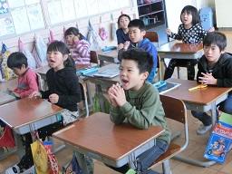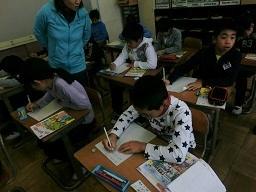 今日のEnglishLessonの時間の1年生の様子です。盛んに大きな声を出していました。