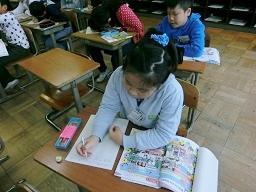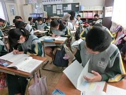 カードは次から次へとめくられます。どんどん練習している1年生です。