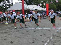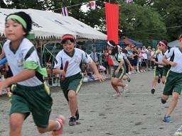 紅白リレーが決着しました。すばらしい走りでした。アンカーをつとめた6年生男子は200mを走りましたので、くたくたです。