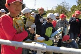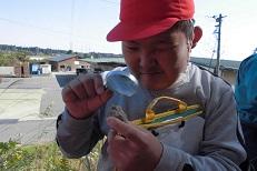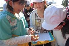 市役所の方に土や石の特徴を説明してもらいました。「あ、本当だ。見えたぞ。」