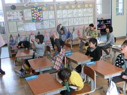 今日は後ろの子ども達を紹介します。これは5年生とその向こうは4年生です。右の写真は4年生です。