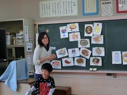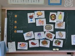 それを前に出て黒板に、食べ物と飲み物に分けて貼ります。