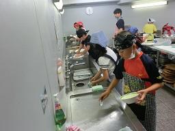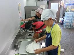 ピザはとってもおいしかったです。片付けをします。洗剤をつけてきれいに洗いました。