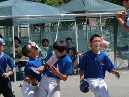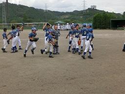 2番手ピッチャーは、KW君、この日はコントロールに苦しみました逃げ切ってゲームセット。「勝ったぞーーーー。」保護者席