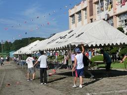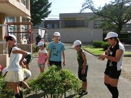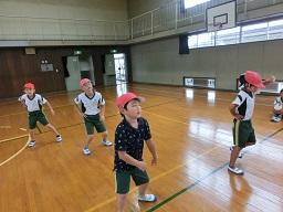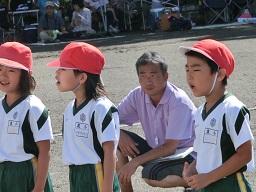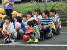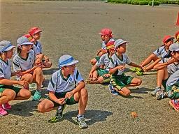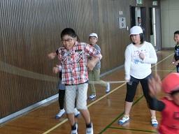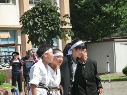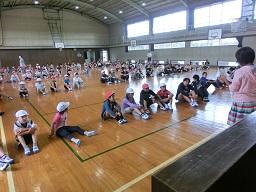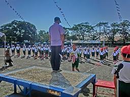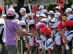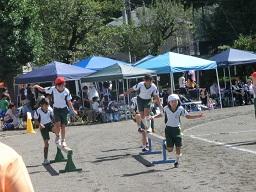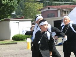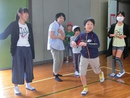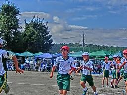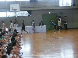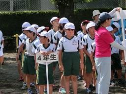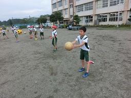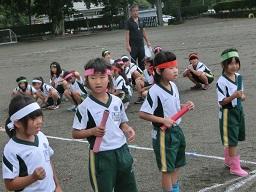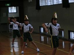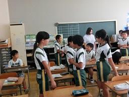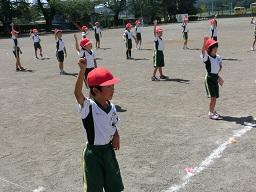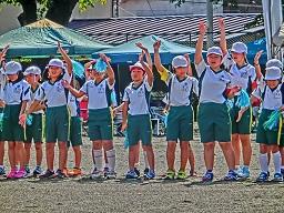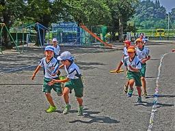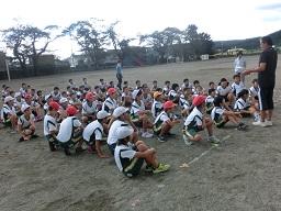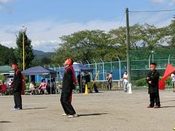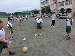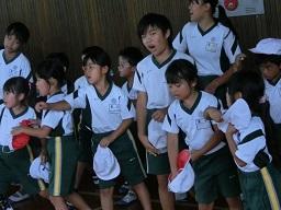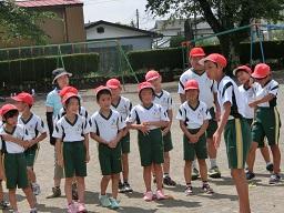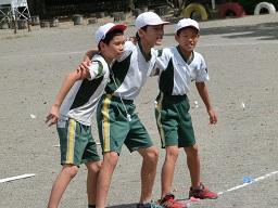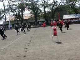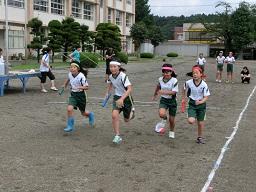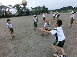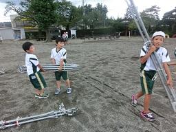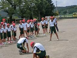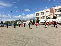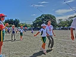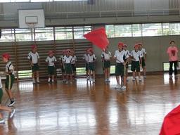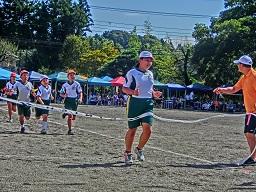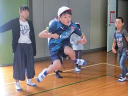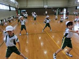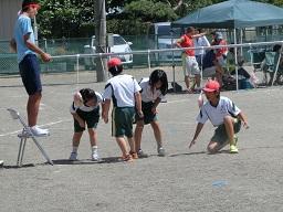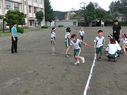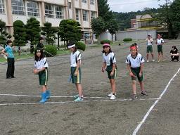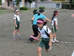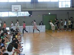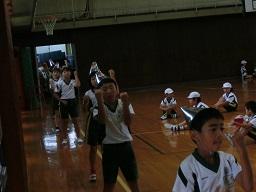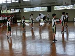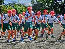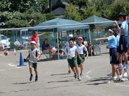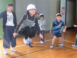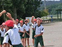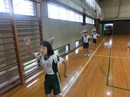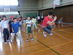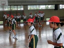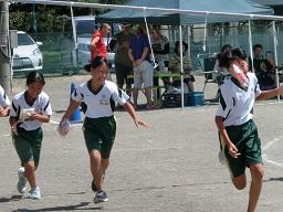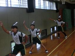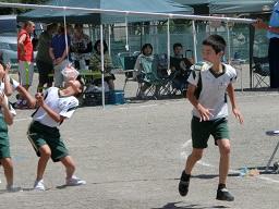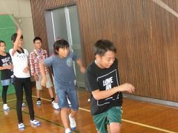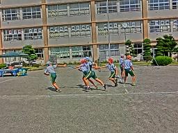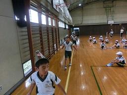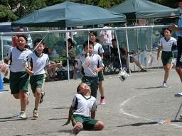 上の写真では、2年生が1年生に「頑張ってね。」と声をかけています。同じグループの3年生はうまいですね。相当高く飛び上がっています。