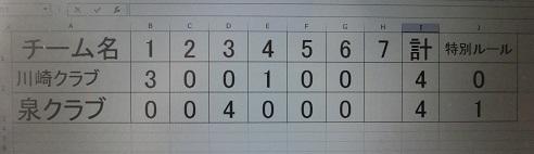 この後3回裏に一点を返した泉クラブは、4回裏に4番キャッチャーRM君がフォアボールを選び、2盗、3盗を成功させ、ホームにも帰って同点になりました。