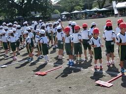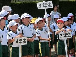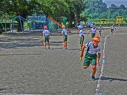 スタートは4年生です。校庭南側、桜並木の側からスタートです。