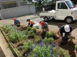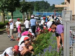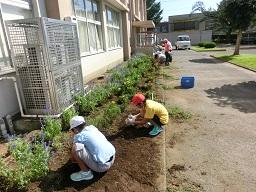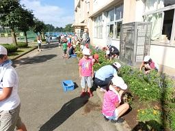 運動会の練習も始まりました。校庭もきれいになったので、花壇もきれいにしようと、朝の比較的涼しい時間に計画しました。