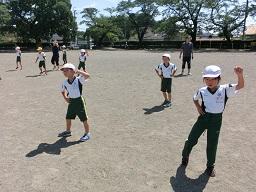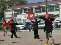 ずいぶん踊れるようになっています。校庭に出て練習するのは2回目です。