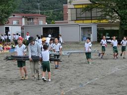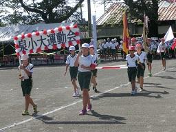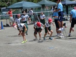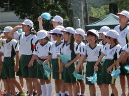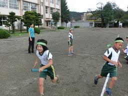 今日の午前中、泉中学校の運動会で泉小の子供たちの競技がありました。