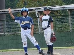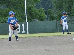 外野の守備です。ライトは3年生AM君、レフトは5年生のKH君です。