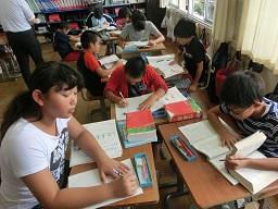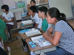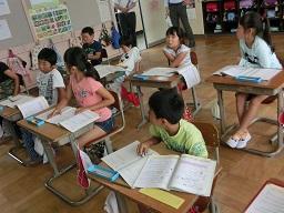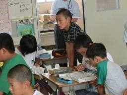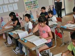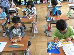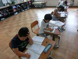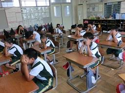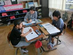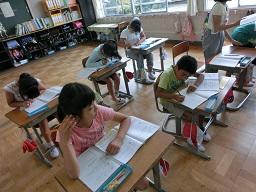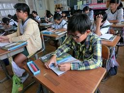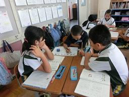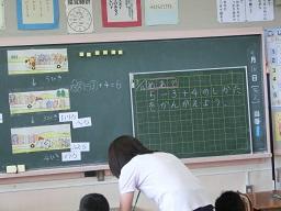 今、子供たちは計算問題を解いています。この日の算数の時間に関係のある割り算です。
