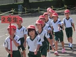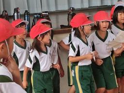 今日の3時間目に1、2,3年生で運動会の練習をしました。