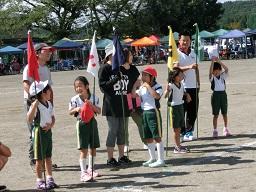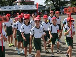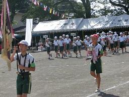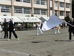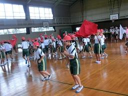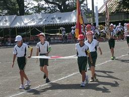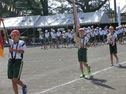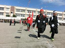 今日は応援合戦の様子をお伝えします。元気よく団長を先頭に入場しました。