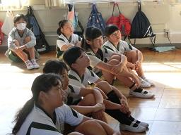 「泉小学校の6年生のみなさん、こんにちは。」と言うわけで、配ってもらった資料に目を落とす6年生です。