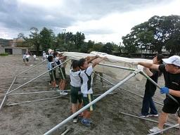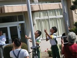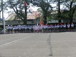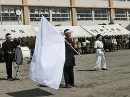 今度はエールの交換です。赤組が白組の健闘をたたえています。