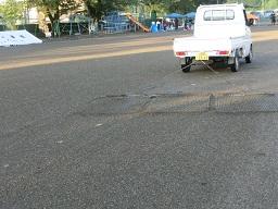 大きなトラックも実際に道路を走ります。信号をみんなが守って走行します。