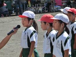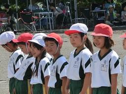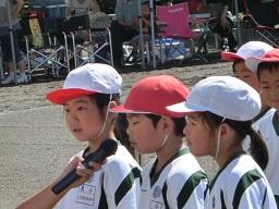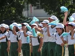 大太鼓と女子応援団員も元気がいいですね。それに答える赤組の子供たちです。