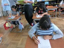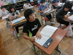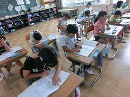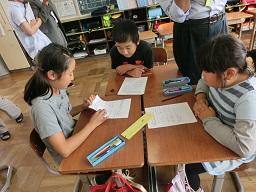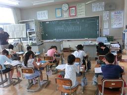 先週の水曜日の4年生の算数の3回目(最終)です。この日は、県や市の教育委員会の先生が3人も授業参観をしました。また本校の先生方も参観しました。そして、4年生の勉強の様子を見ました。