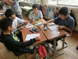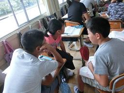 司会を決めて、一人ずつ自分で考えたことを話しています。