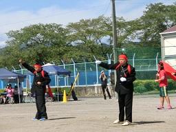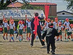 白組の子供たちもそれに答えています。大太鼓は6年生KH君です。