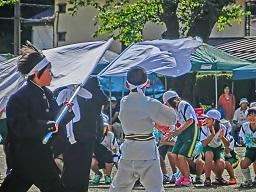 さて今度は、白組の応援です。柔道着の子供たちも見えます。