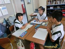司会者は毎回変ります。話し合いのグループの人数は本校では、3人を基本にしています。