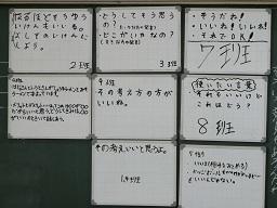 いろいろな意見が出ました。その中での意見をグループごとにホワイトボードに書きました。