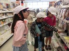 お家の人に頼まれた物を買う子、自分の好きな物を買う子、考えながらかごを持っていますね。
