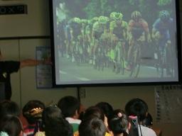 2回の部屋で画面に映った写真やグラフを見ながら説明がありました。那須ブラーゼンはプロの自転車チームです。この続きは明日です。